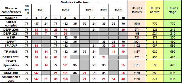 L’enseignement théorique comporte 5 blocs de compétences divisés en 10 modules de formation :